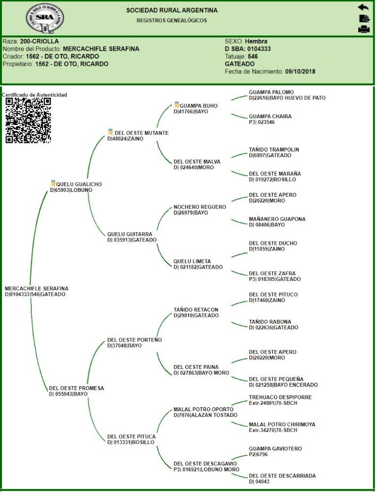 *Criolla Pura de Pedigree Inscripta.