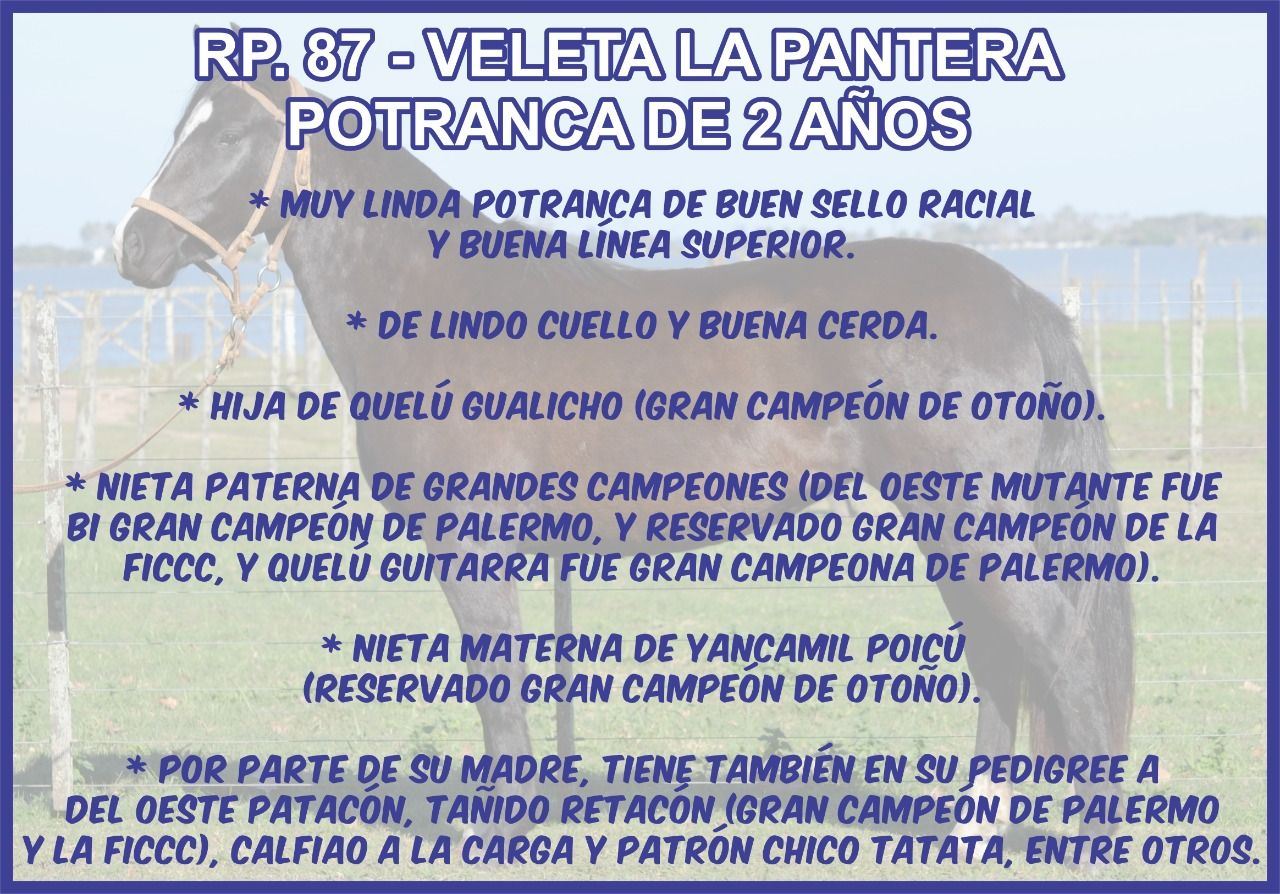 VENDIDA- RP. 87- VELETA LA PANTERA- POTRANCA HIJA DE QUELÚ GUALICHO QUE CUMPLE 3 AÑOS EN NOVIEMBRE